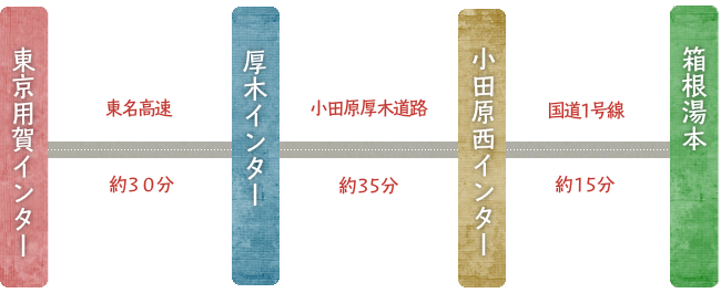 東京用賀IC ~ 【東名高速道路 約30分】 ~ 厚木IC ~